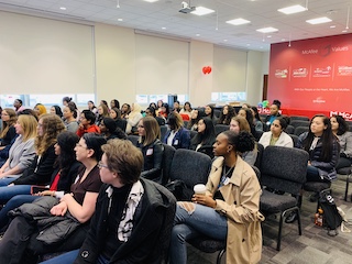 While we can’t answer all your questions, our Women in Security (WISE) employee resource group offered to host a panel discussion to encourage the next generation of women in tech to pursue their passions. Students asked questions about what it’s like to work in the technology industry, the importance of mentorship, overcoming imposter syndrome, achieving success early in career, and about life here at McAfee.