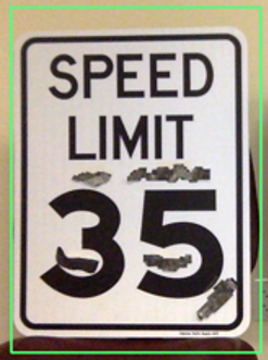 - Black-box attack on the 35-mph sign, resulting in a misclassification of 45-mph sign. This attack also transfers on state-of-the-art CNNs namely Inception-V3, VGG-19 and ResNet-50
