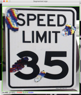 - Example of our resilient classifier correctly classifying the 35-mph speed sign with 95.93% confidence